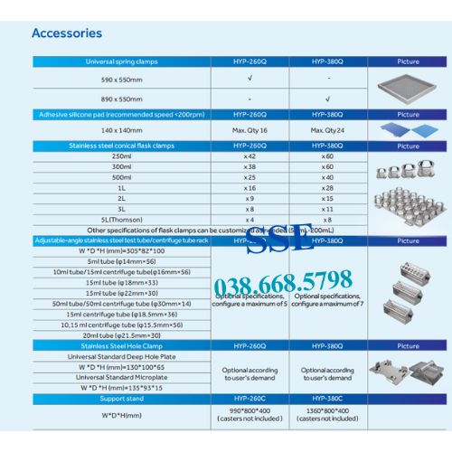Các phụ kiện có thể tùy chỉnh theo nhu cầu của phòng thí nghiệm.